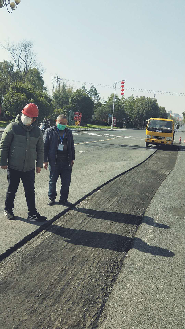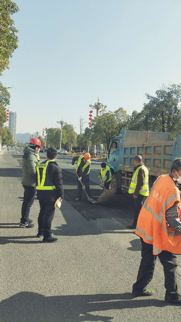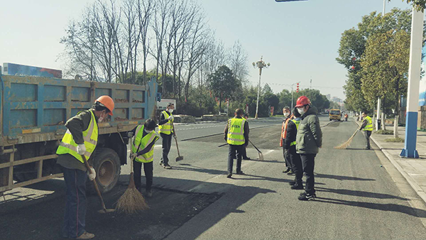 受雨雪冰凍天氣影響,市區(qū)瀝青路面破損情況嚴(yán)重,春節(jié)期間,公司養(yǎng)護人員采用冷補瀝青進行了修補,但修補效果不如熱瀝青。2月20日,公司利用晴好天氣對養(yǎng)護范圍內(nèi)城市道路,特別是濱江路延伸段、延安路等瀝青路面病害嚴(yán)重的路段開展了為期4天的統(tǒng)一集中修補。每日出動銑刨機、大型鋼輪壓路機、乳化瀝青撒布車、灑水車各1輛,運輸車5輛,平板夯2臺,吹風(fēng)機1臺,養(yǎng)護工22名和現(xiàn)場管理人員3名,按照疫情防控要求,上崗前對所有作業(yè)人員進行體溫檢測和疫情防控技術(shù)交底,共發(fā)放防護口罩130余個。同時,公司努力克服施工時間限制、修補面積大、疫情期間工作餐難訂等諸多困難,積極協(xié)調(diào)、搶抓時機、保質(zhì)保量、高效作業(yè)。截至2月23日下午,已完成延安路、濱江路延伸段、屯光大道等路段瀝青路面修補,面積約3800多平方米。