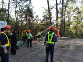 15點(diǎn)40分演習(xí)正式開始,搶險(xiǎn)隊(duì)員迅速沿登山步道到達(dá)指定滅火區(qū)域,有的隊(duì)員快速對(duì)消防栓、水帶進(jìn)行組裝;有的隊(duì)員熟練操作滅火器材;有的隊(duì)員利用強(qiáng)力吹風(fēng)機(jī)進(jìn)行滅火作業(yè)。所有人員協(xié)調(diào)聯(lián)動(dòng),分工明確,操作標(biāo)準(zhǔn),撲火人員行動(dòng)迅速、服從命令,順利完成了此次山場(chǎng)防滅火應(yīng)急演練。