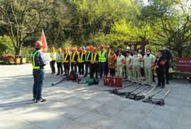 下午15點(diǎn)20分,根據(jù)公司應(yīng)急預(yù)案,由總指揮周鵬下達(dá)演習(xí)命令,10分鐘后,25人的應(yīng)急搶險(xiǎn)隊(duì)伍快速集結(jié)在戴震公園廣場(chǎng)并完成整隊(duì)。正式演練前,周鵬為參加演練的人員作了演習(xí)思想動(dòng)員,詳細(xì)介紹了森林火災(zāi)的起因、火災(zāi)的預(yù)防以及現(xiàn)場(chǎng)逃生自救的方法,講解了滅火器、滅火拖把、油鋸、鼓風(fēng)機(jī)等常見防滅火裝備的使用方法和維護(hù)保養(yǎng)注意事項(xiàng)。