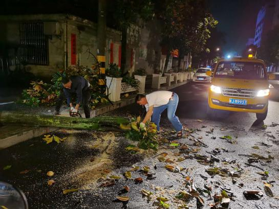 經(jīng)現(xiàn)場(chǎng)勘查,由于人行道路面提升改造時(shí),樹(shù)木根系受到了損傷,持續(xù)降雨導(dǎo)致樹(shù)木根部土壤松軟,加上風(fēng)力的作用,樹(shù)冠比較大的樹(shù)木容易發(fā)生倒伏等原因影響造成了樹(shù)木倒伏。為避免倒伏樹(shù)木影響道路交通,搶險(xiǎn)人員立即采取應(yīng)急措施,冒著大雨對(duì)倒伏樹(shù)木進(jìn)行截干、修剪,并將修剪下的枝干及時(shí)移出行車(chē)道,裝運(yùn)至定點(diǎn)位置進(jìn)行處理。截至當(dāng)晚11時(shí)許,倒伏樹(shù)木已處理完畢,恢復(fù)了交通。