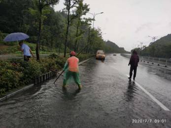 一是隨時關注天氣情況,通過微信、QQ工作群及時發(fā)布雨情險情,保證公司應急隊伍在關鍵時候能拿得出;二是及時響應暴雨紅色預警信號,迅速啟動應急預案,實行24小時值班制度,加強中心城區(qū)市政園林基礎設施應急防澇工作。三是落實應急隊伍巡查制度,做好雨前、雨中、雨后的巡查、檢查工作,共出動6批應急隊伍共25名應急隊員、7臺搶險車輛、1臺高空作業(yè)車上路巡查,發(fā)現(xiàn)積水處立即打開井蓋進行人工助排,并派專人值守,避免發(fā)生事故。三是公司分管副總經(jīng)理