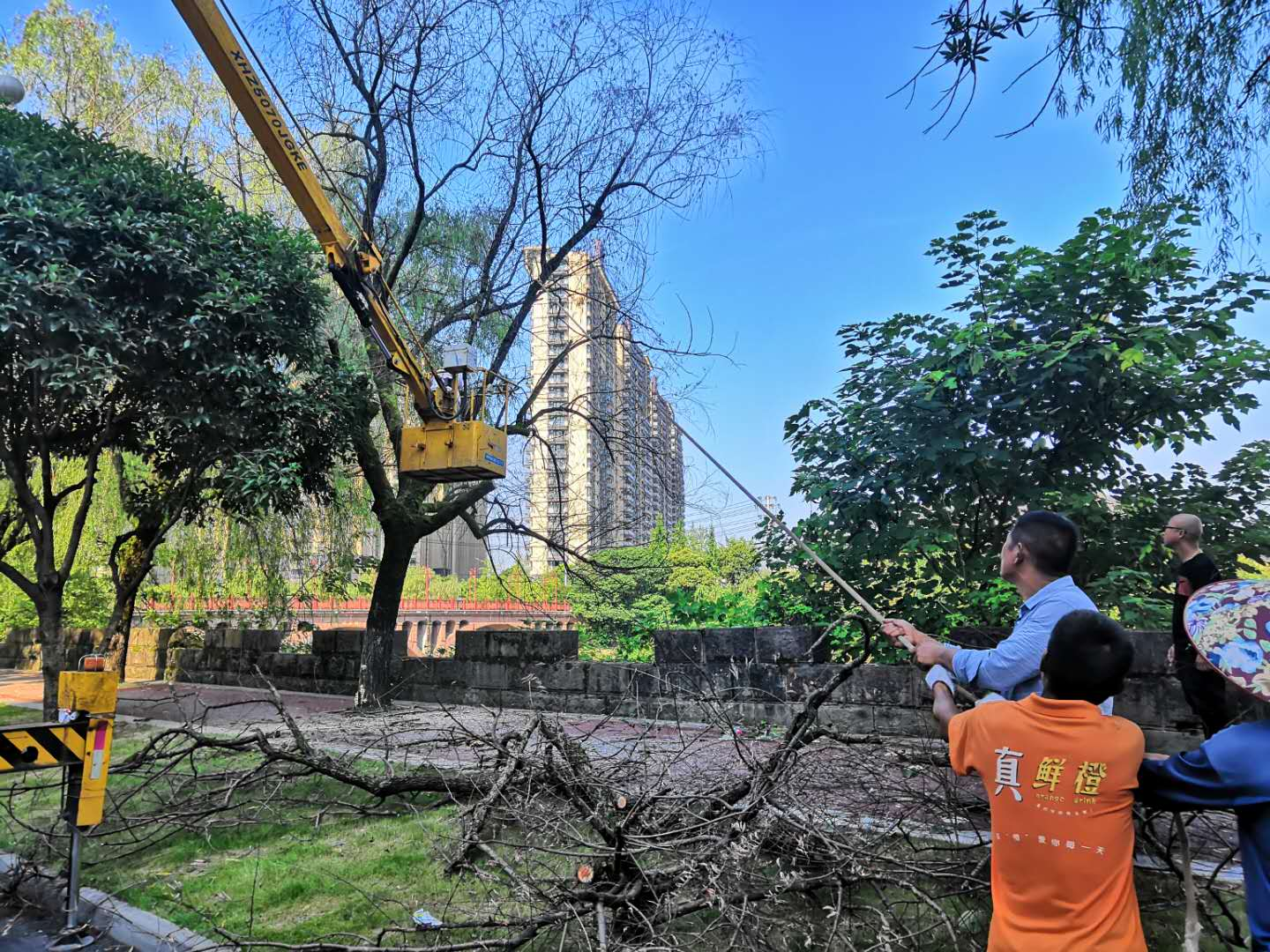 為進一步提升中心城區(qū)綠化景觀水平,鞏固文明創(chuàng)建工作成果,近日,市政園林公司組織人員對中心城區(qū)主次干道、公園廣場的枯樹、危樹進行了隱患摸底排查、統(tǒng)計,同時,出動高空作業(yè)車、油鋸等機械設備對死樹、危樹、干枯枝進行全面清理,并及時清運枯枝及周邊垃圾。由于施工地點位于中心城區(qū),車流量、人流量較大,為保障施工安全,公司避開高峰期,設置了安全警示標志,并安排專人在路口進行引導。截止目前,已完成了云海路、音樂廣場等5處道路廣場枯死樹木的清理工作,共處理枯樹、死樹25株,消除了安全隱患,美化了環(huán)境。