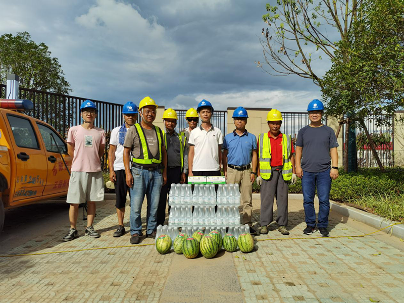 暴雨匿跡,高溫跟進。8月4日,市政園林公司黨支部一行赴黃山高鐵A-1地塊室外總體瀝青混凝土路面工程施工現(xiàn)場,慰問奮戰(zhàn)在一線的職工,為高溫季節(jié)堅守在一線工作的員工送上公司的關懷。