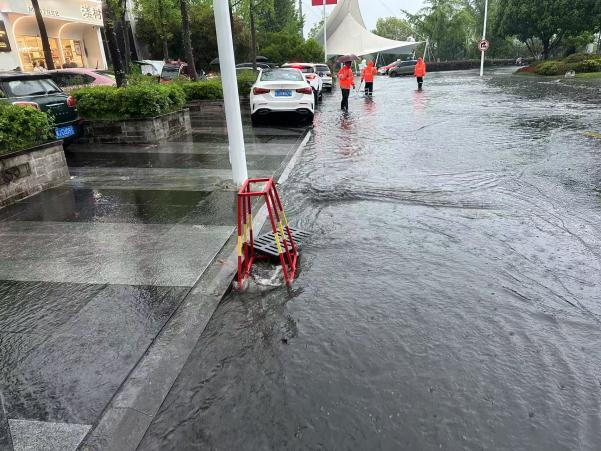 12時50分,市政園林公司應急指揮部發(fā)出“防汛動員令”,20輛應急搶險車、80名專業(yè)搶險人員15分鐘內(nèi)完成集結,分赴徽州大道、濱江路等5處重點積水區(qū)域。搶險人員采取“封控-排水-清淤”三步處置法,在積水最深路段架設90余塊防洪擋水板、堆筑100余袋沙袋圍堰,同步啟用大功率排水設備開展強排作業(yè)。1臺大功率動力站和便攜抽水機連續(xù)運轉3小時,單小時排水量達400立方米,為搶通道路贏得時間。