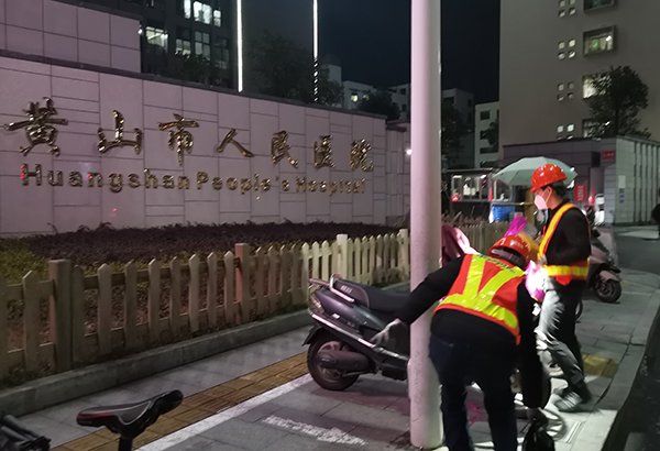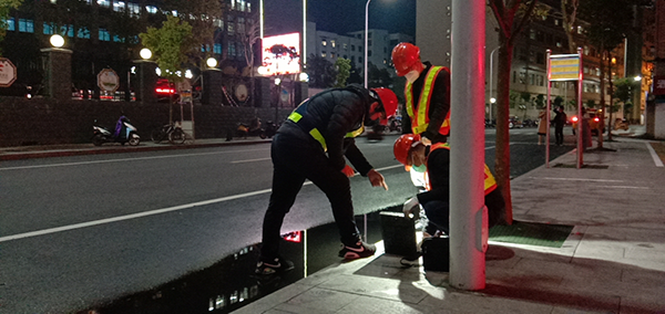在疫情防控的關(guān)鍵時期,每當夜晚降臨時在中心城區(qū)都能看見有這么一群頭戴橙色安全帽,面帶防護口罩、身穿橙色反光背心的“逆行者”,他們舍小家、為大家,堅守在戰(zhàn)疫情防控保障一線。