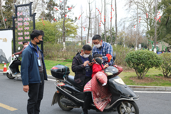 “您好,請出示一下安通碼?!?月25日下午,中心城區(qū)江心洲廣場,市政園林公司的志愿者們正在核查進入廣場的人員身份。為加強公園管理,公司在養(yǎng)護范圍內(nèi)的江心洲、世紀廣場、戴震公園等處入口設(shè)置了核查點,通過屯溪區(qū)范圍內(nèi)使用的昱城情安通碼,“一人一碼”、“一人一信息”實名進入公共廣場。由于安通碼推出時間較短,還有部分市民未了解其使用方式,公司還安排了志愿者為市民進行耐心地講解。