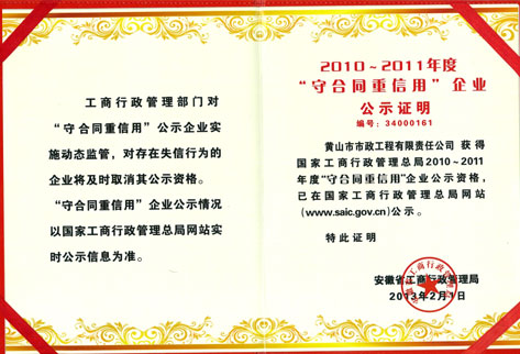 2010-2011安徽省守合同重信用先進(jìn)單位